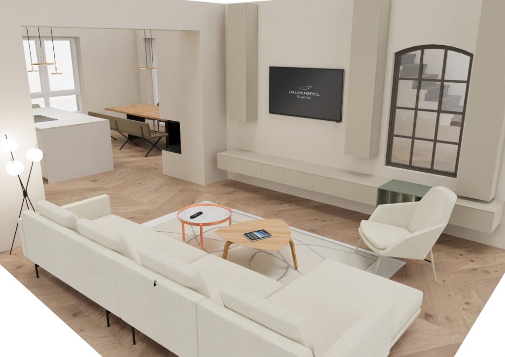Die 3D-Visualisierungen dienen als visuelle Entscheidungs- und Kommunikationshilfe. Ein wesentlicher Unterschied zu klassischen Renderings liegt in der Arbeitsweise: Es werden keine beliebigen Fantasieprodukte dargestellt, sondern reale Möbel und Konfigurationen, die später auch tatsächlich umgesetzt werden können. Wir unterstützen Sie dabei Raumkonzepte besser zu verstehen und Möblierung und Proportionen realistisch einzuschätzen, als auch Abstimmungen mit Gewerken vorzubereiten. Dabei steht stets die Umsetzbarkeit im Vordergrund.